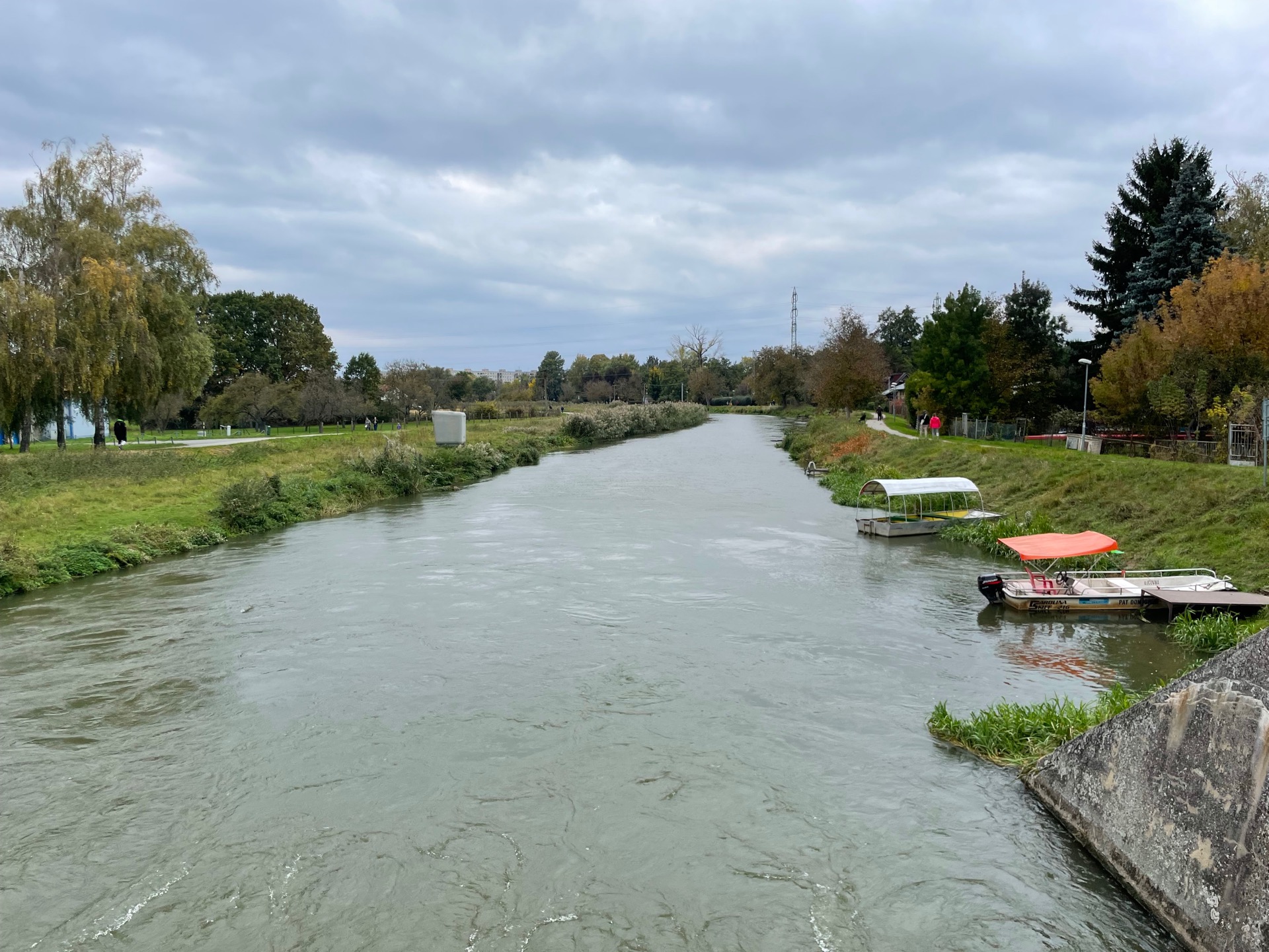 Pro páteční výlet jsem si vybral svou oblíbenou silniční klasiku do Velkých Bílovic, Lednice, Valtic, Mikulova a pak přes Pálavu do Dolních Věstonic a zpátky přes Hustopeče, protože silnice ze Zaječí ke staré státní silnici, po které se obvykle vracívám, se opravuje a je zavřená. Bylo zataženo, mraky seděly nízko a bylo větrno. Do Velkých Bílovic mi foukalo do zad a cesta rychle utíkala. Pak jsem se otočil kolmo na vítr a z Valtic do Mikulova mi foukalo rovnou do obličeje. Počasí svádělo k nostalgii. Stvoly kukuřice na polích kolem silnice vyšisované a vyšušené do pískových odstínů ve větru šuměly, šupolček a šupolienka. Vinice s modrými odrůdami byly ještě vesměs nesklizené a těžké modré hrozny dávaly tušit bohatou úrodu. U sklepů všude, kudy jsem jel, a nejvíce snad v Dolních Věstonicích panoval čilý ruch doprovázející vrchol vinařské sezóny. K tomu pár lidí v kabátech na mikulovském náměstí a pěnové čepičky vln na olověné hladině nádrží. Stromy sice ještě nezačaly doopravdy žloutnout, ale podzim byl všude kolem ve vzduchu.